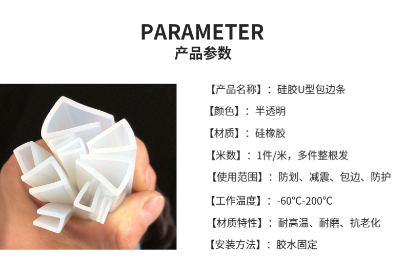 シリコンu型条耐高温防水半透明シール条ガラス鋼板材縁衝突防止条