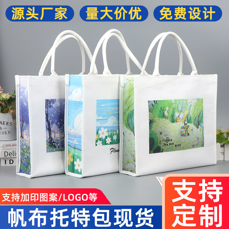 現物トートキャンバスバッグ立体通勤大容量油絵キャンバスバッグ印刷ロゴ防水手提げ袋エコバッグ