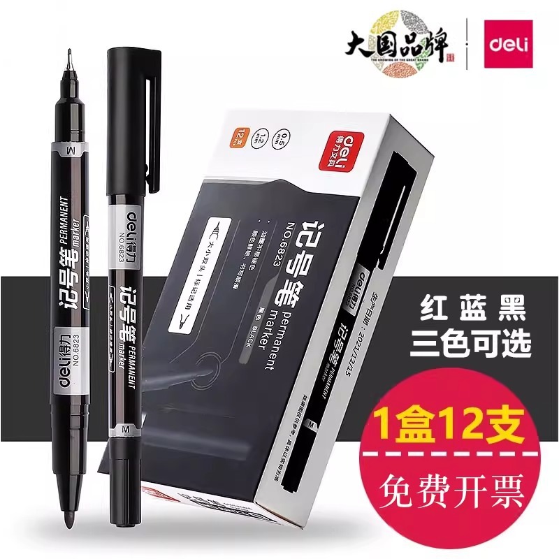 得力记号笔批发6824勾线用黑色油性笔划重点防水不掉色标记用笔