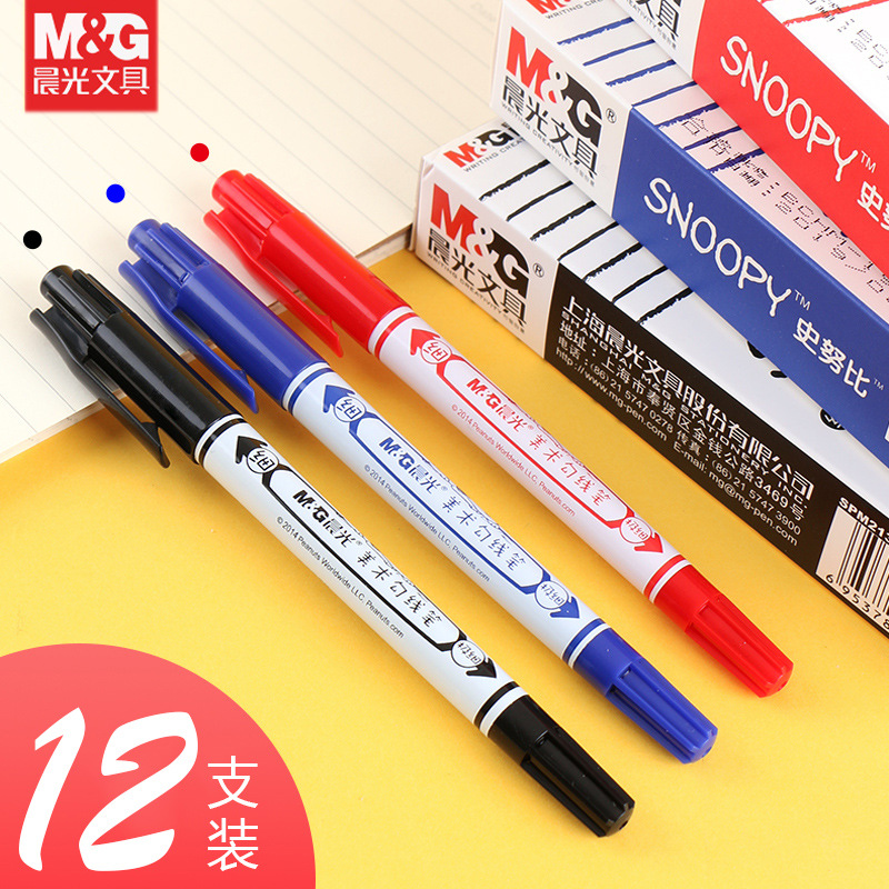 晨光文具史努比系列小双头勾线笔粗细记号笔学生美术手绘描边笔
