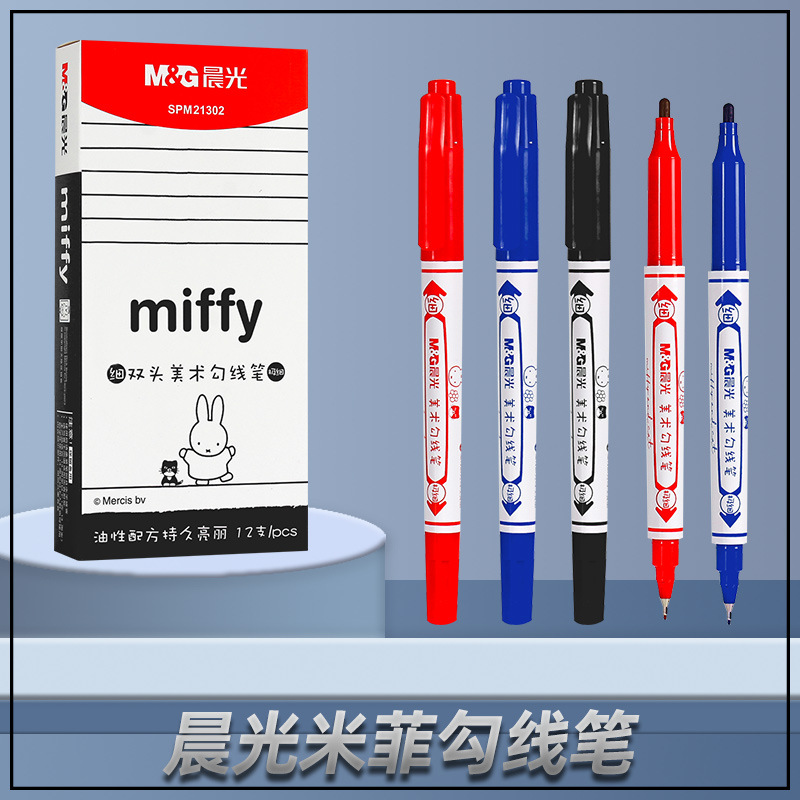 モーニングライトミッフィー小型双頭マーカー防水かわいい子供の絵画フックラインペン油性マーカーペン署名ペン