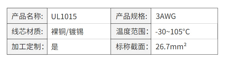 卸売アメリカ標準ワイヤー UL1015 3AWG ワイヤーアメリカ標準電子ワイヤー PVC ソフトワイヤーアメリカ標準単芯ワイヤー