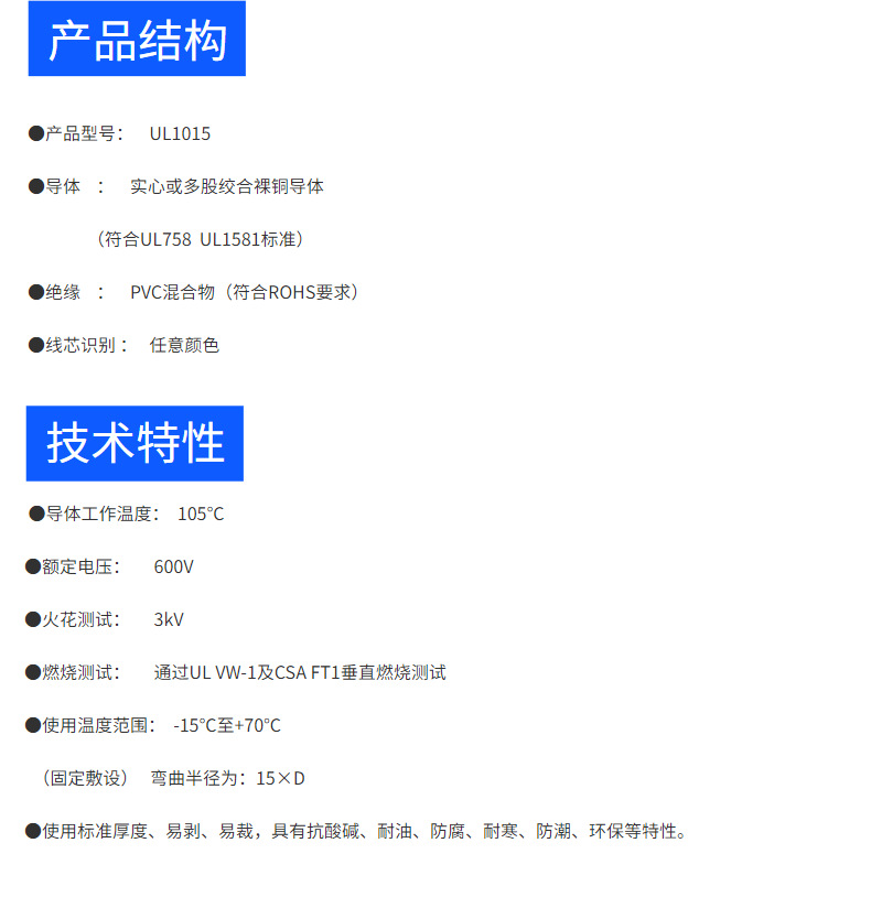 仕様とモデル UL1015 3AWG