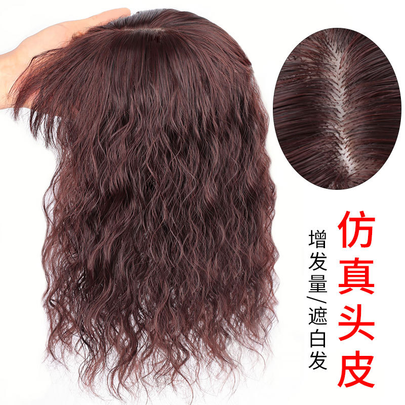 かつらの女性のトップの増発量はふわふわしていて、白髪を隠しています。