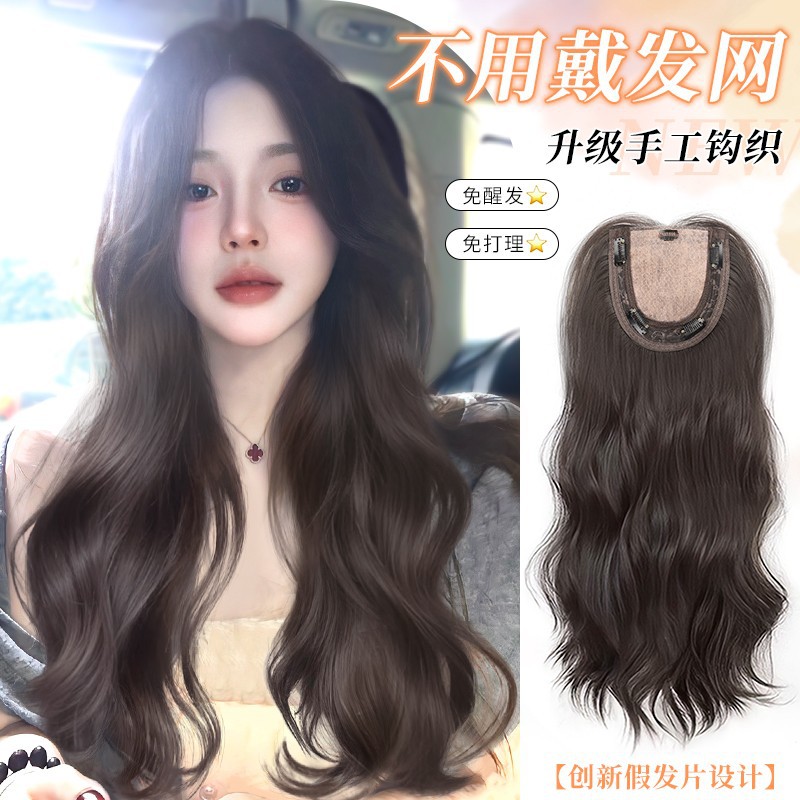 玉米烫头顶补发片蓬松增发量自然轻薄遮白发仿真妈妈羊毛卷假发片