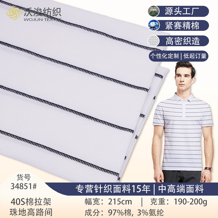 加工・カスタムされたタイトフィットニットストライプポロシャツ生地、綿混紡ストレッチ素材、純綿汗取り生地、メンズサマーTシャツ生地