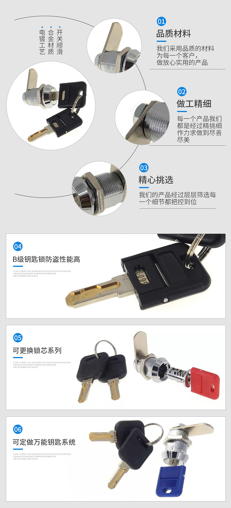 メーカーは亜鉛合金製のパスワードロック、ファイルキャビネット用パスワードロック、キャビネットドア用キーと両用のデジタルパスワードロックを供給しています。