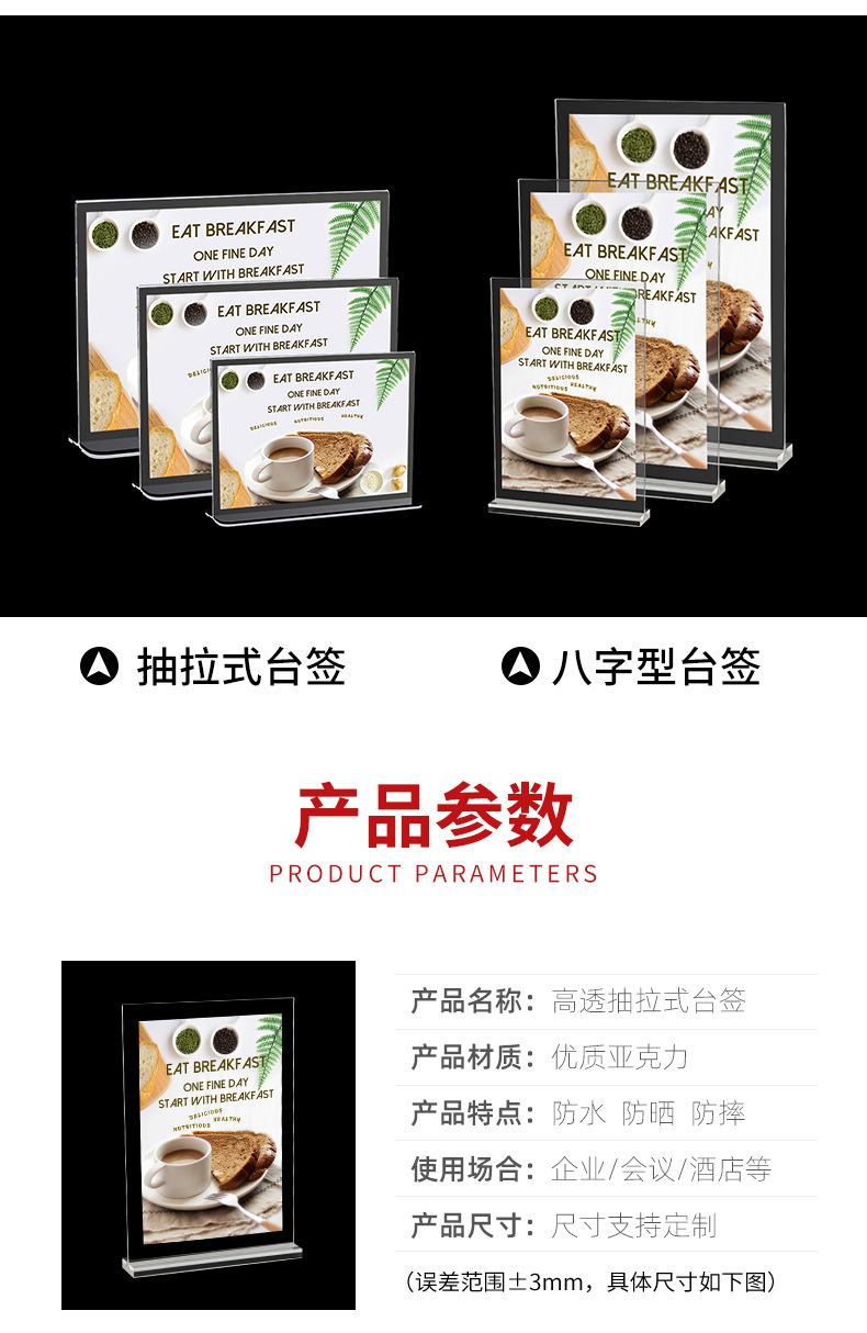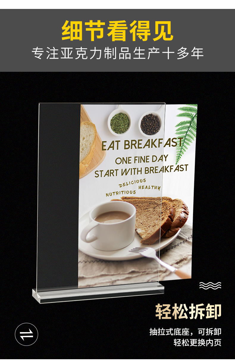 アクリル透明台カードa4デスクトップ酒水広告強磁気展示価格ブランド引き式T型メニュー台札