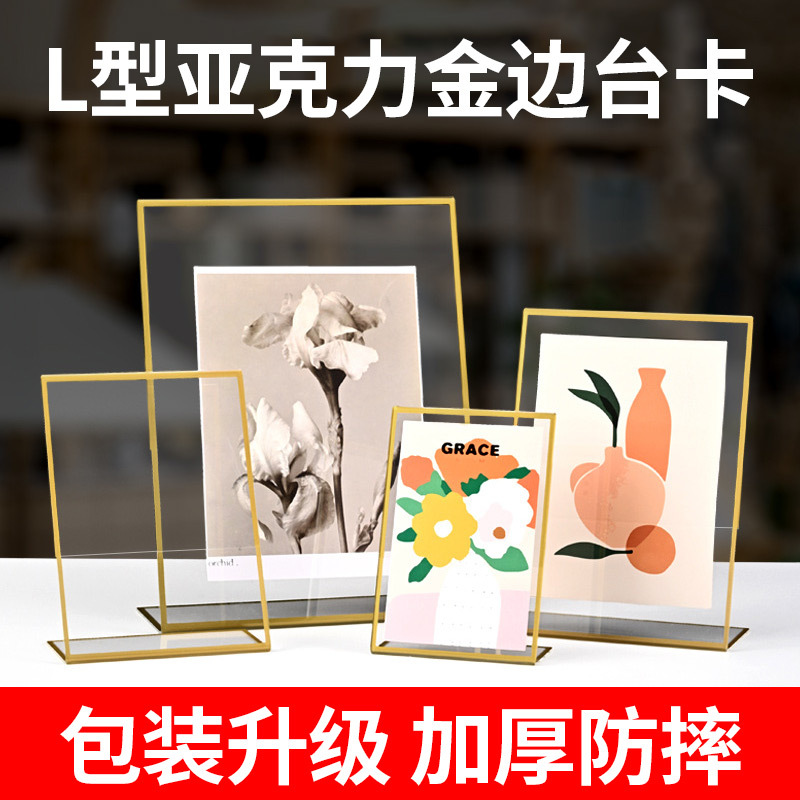 アクリル金縁テーブルカードL型アマゾン越境引き出し式テーブルサインウェディングスタンドプライスカード透明広告板