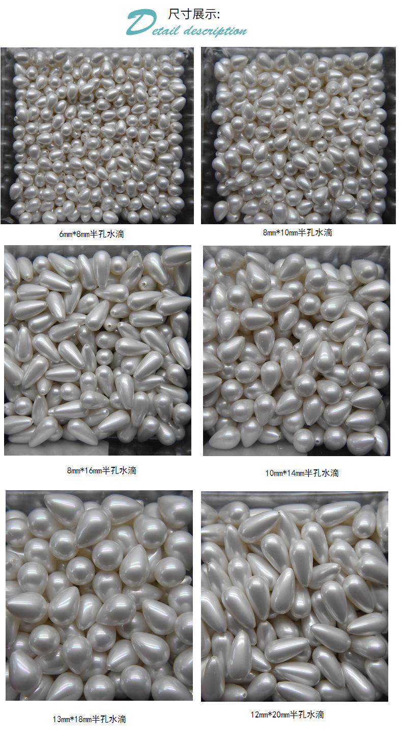 マルチサイズ色とりどりの白い模造貝玉半穴散珠水滴真珠イヤリングペンダントdiy手作り材料