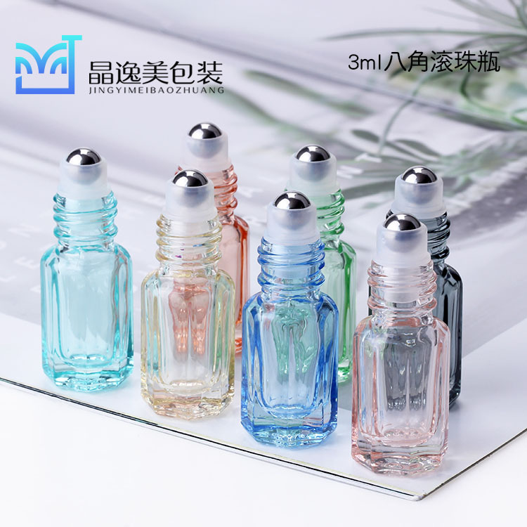 ボールボトル3mlカラー八角形ボールボトル鋼珠プラスチック蓋小精油ボトルガラス香水小サンプルボトル