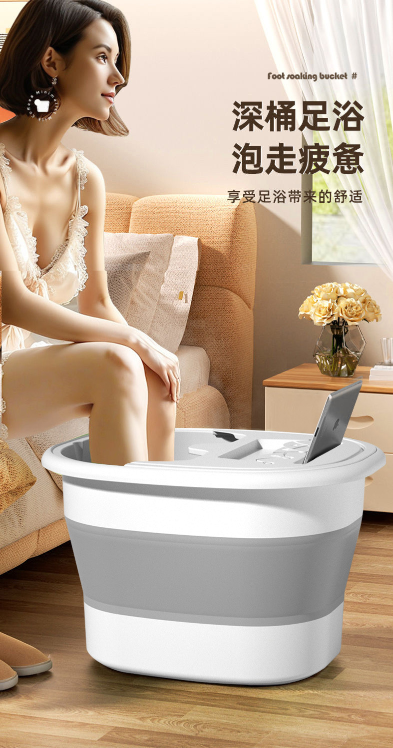 可折叠泡脚桶家用便携按摩养生足浴盆加高深过小腿冬季保温洗脚盆