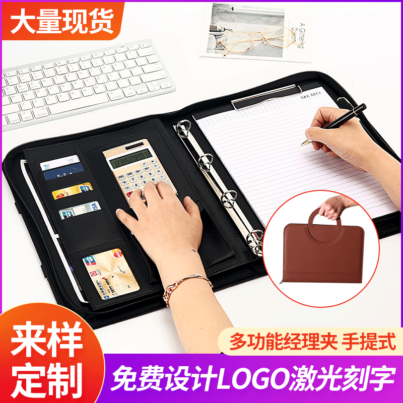 跨境a4文件夹定制商务办公销售谈单夹多功能大容量拉链活页夹批发