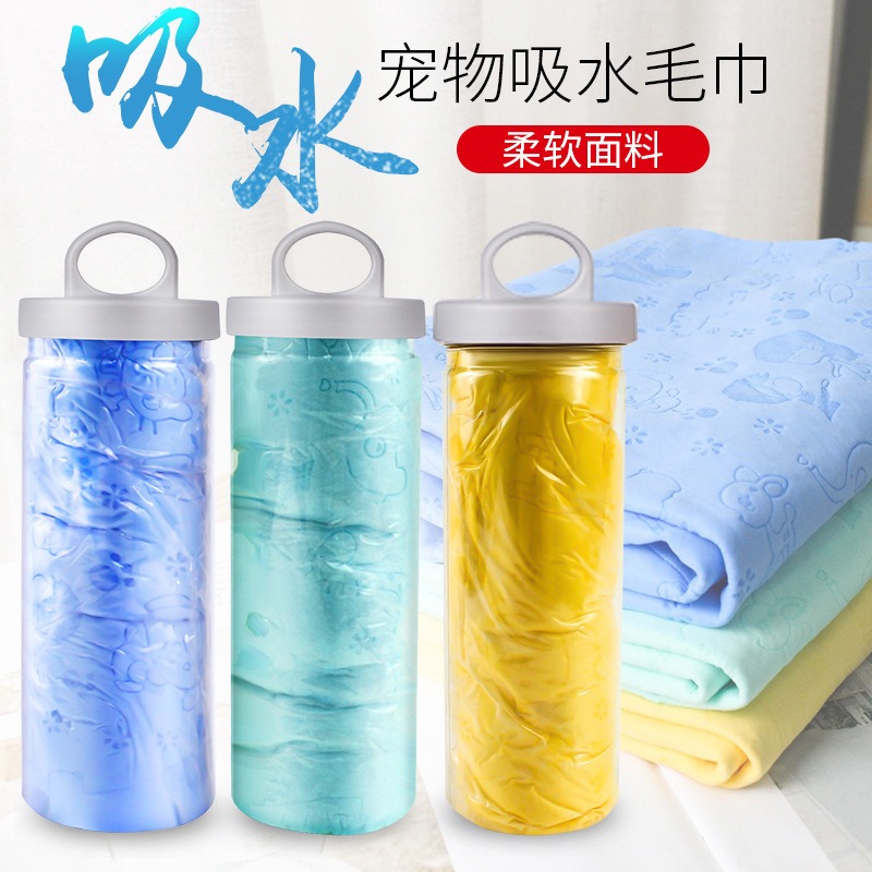 ペット吸水タオル 猫犬用バスタオル バケツ入り速乾ペットタオル 模造鹿革タオル 卸売越境