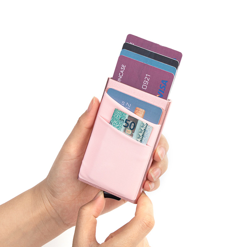 RFIDカード所有者向けメンズクレジットカードケース ローズゴールドカードホルダー 卸売 自動ポップアップメタルカードホルダー アクセスカード