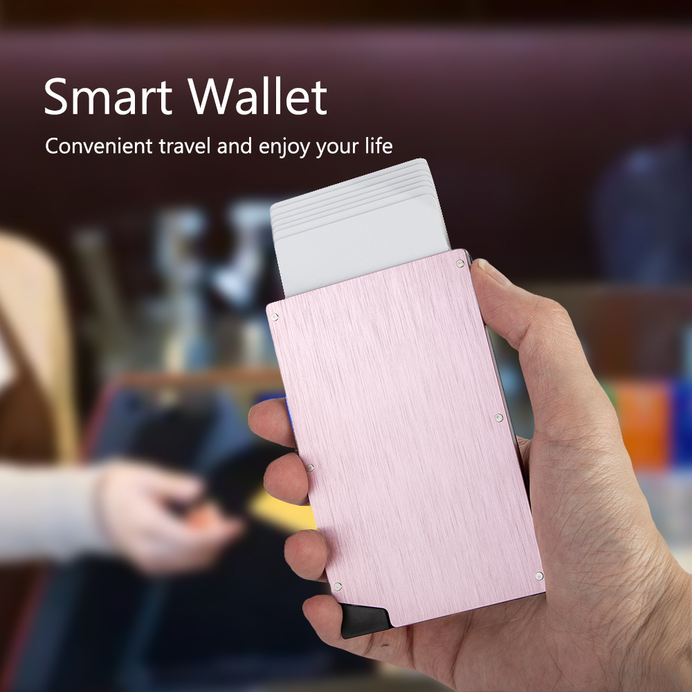 メーカー卸売りアルミ合金クレジットカードケース財布金属自動ポップアップ名刺ケース盗難防止ブラシrfidカードクリップ