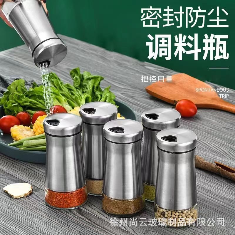 台所の大底調味缶ステンレスガラス調味瓶散粉缶クミン唐辛子粉瓶家庭用調味箱