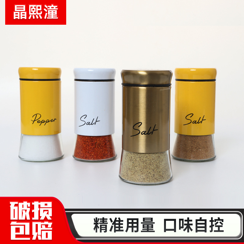跨境家用玻璃旋转调料罐不锈钢调味瓶厨房胡椒粉瓶户外便携撒料罐