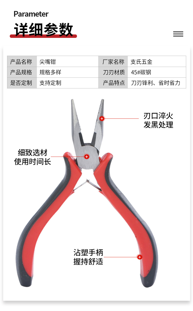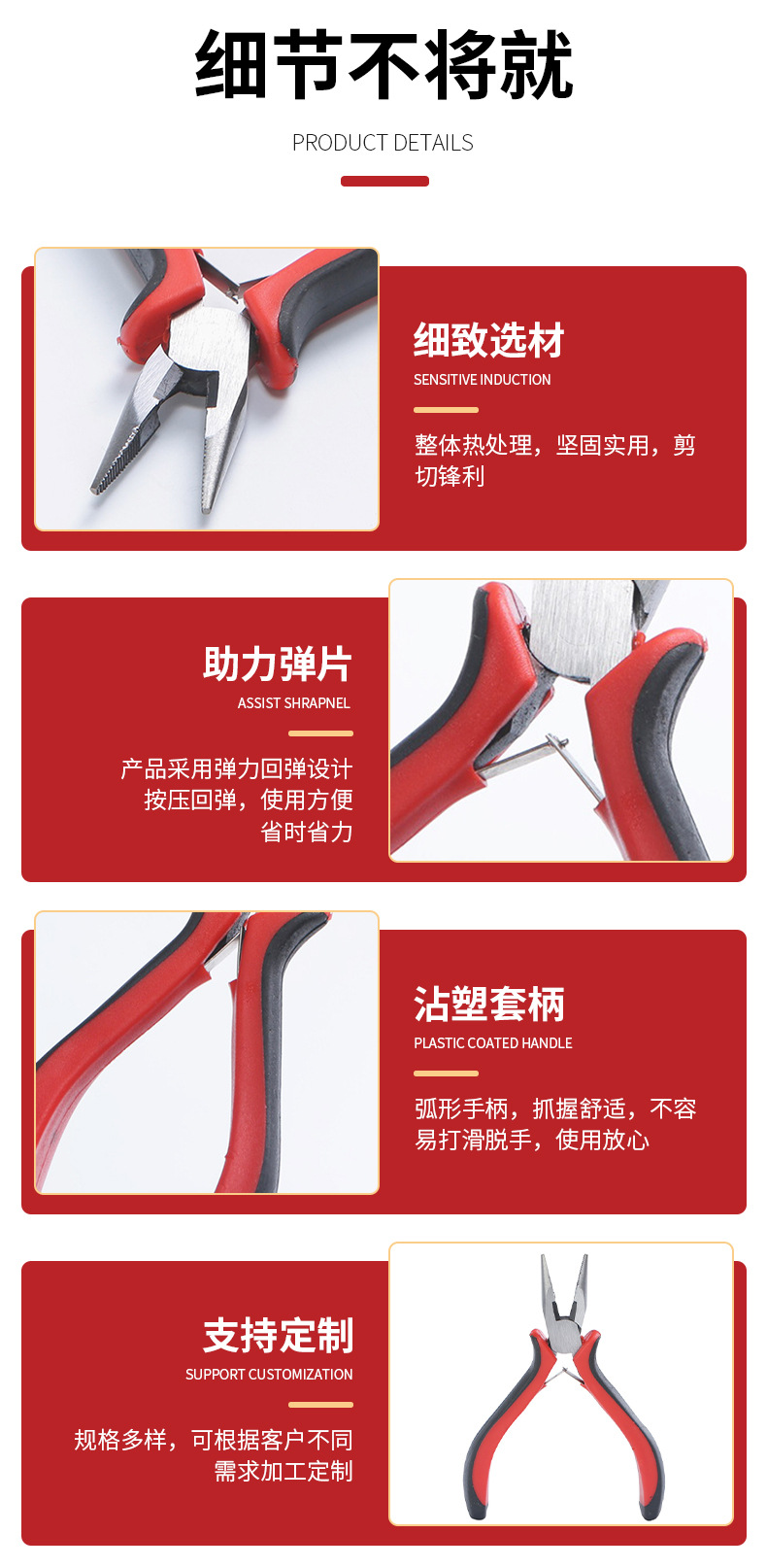 ミニ尖口ペンチ黒柄斜口ペンチ角度クランプアクセサリー蘇州メーカー