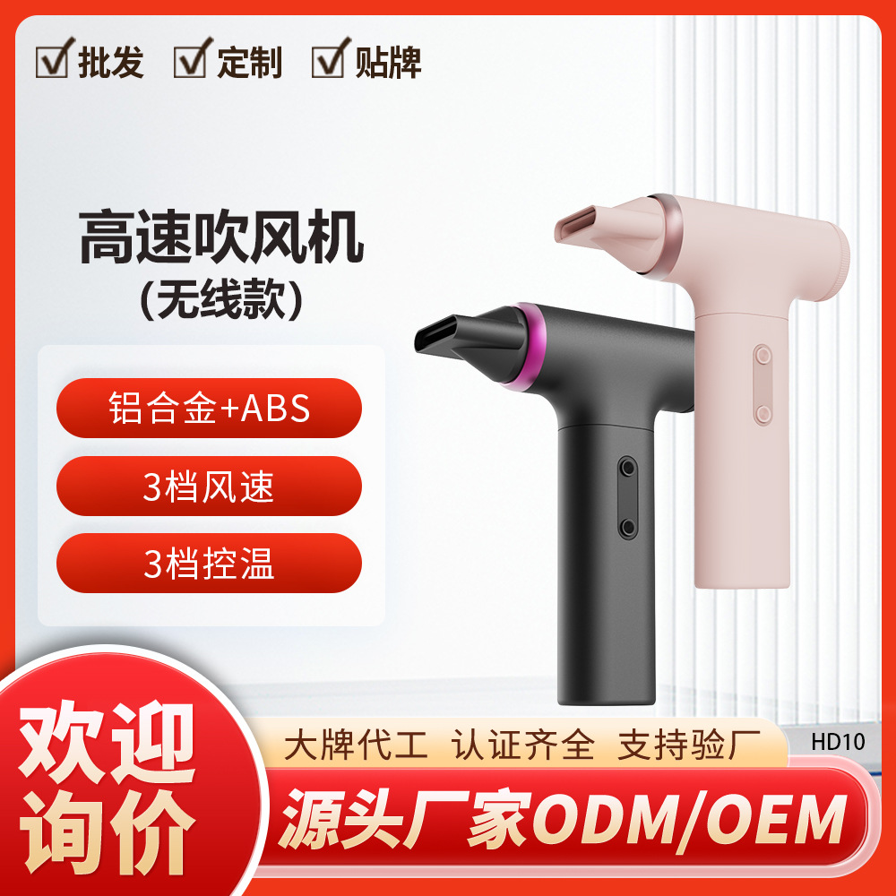 跨境新品高转便携式高速无线吹风机智能温控三档超氧负离子吹风筒
