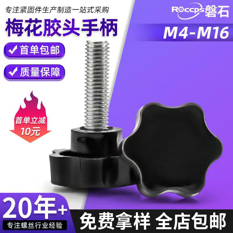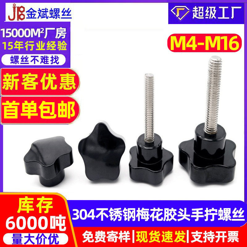 梅花ハンドルネジ手締め六つ星ネジノブプラスチックハンドルゴムヘッド手締めボルト M4M5M6M8M10