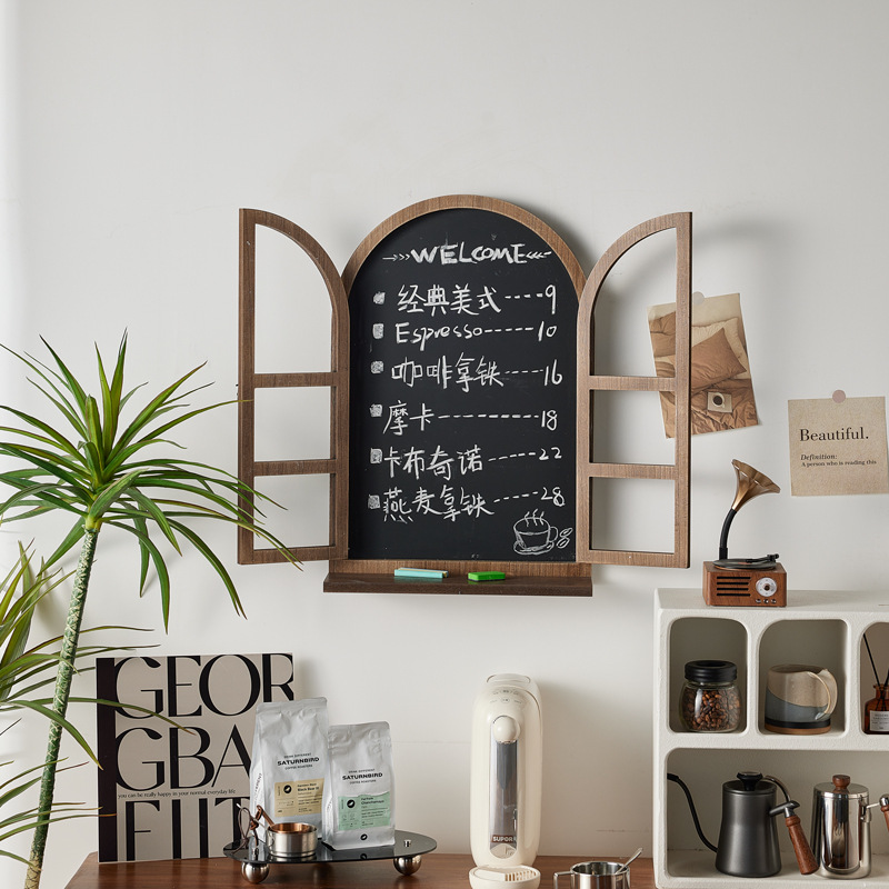 北欧ins風は古い偽窓壁飾りカフェレストランの店舗装飾はメニュー板を消すことができます。
