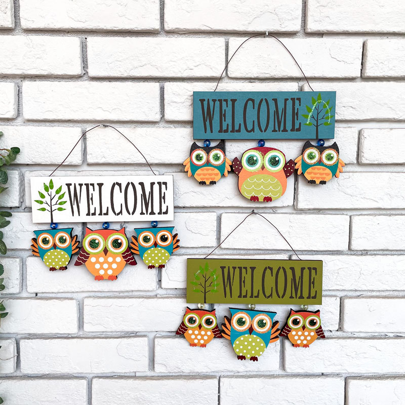 国境を越えたアメリカのフクロウは木製の手作りの彩色絵を飾って家の入り口の玄関のベランダの壁面を飾って掛けます。