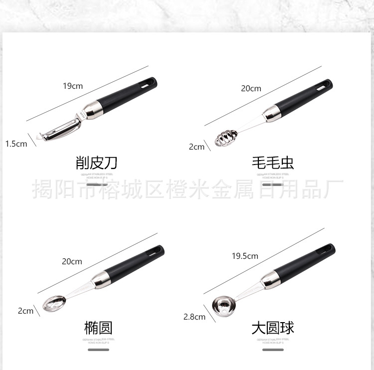 カラー 摩得果物道具【彫刻レース】,摩得果物道具【果物の芯に行く】,摩得果物道具【小さなボール】,摩得果物道具【大きなボール】