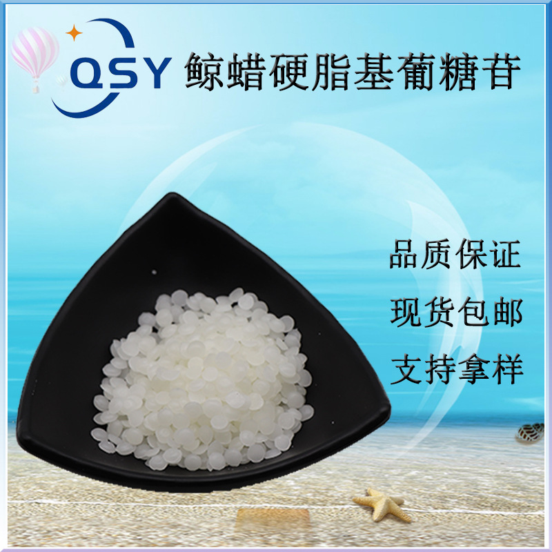 鲸蜡硬脂基葡糖苷99% M68乳化剂/热制剂万方现货鲸蜡硬脂基葡糖苷 【产品名称】:鲸蜡硬脂基葡糖苷 【产品别称】:鲸蜡硬脂基葡糖多苷 【英文名称】:Cetearyl Glucoside 【CAS NO】:246159-33-1 【溶 解 性】:溶于水 【产品性状】:无色至淡黄色液体或膏体。 【制作工艺】: 直接苷化法:酸性催化剂存在下,鲸蜡硬脂醇和葡萄糖直接反应而得。反应过程中,需尽快除去反应中生成的水 转苷化法:(1)低碳醇苷化反应 :低碳醇,如:丙二醇、丁醇等,和葡萄糖生成糖苷;(2)缩醛交换反应:鲸蜡硬脂醇和低碳糖苷反应而得