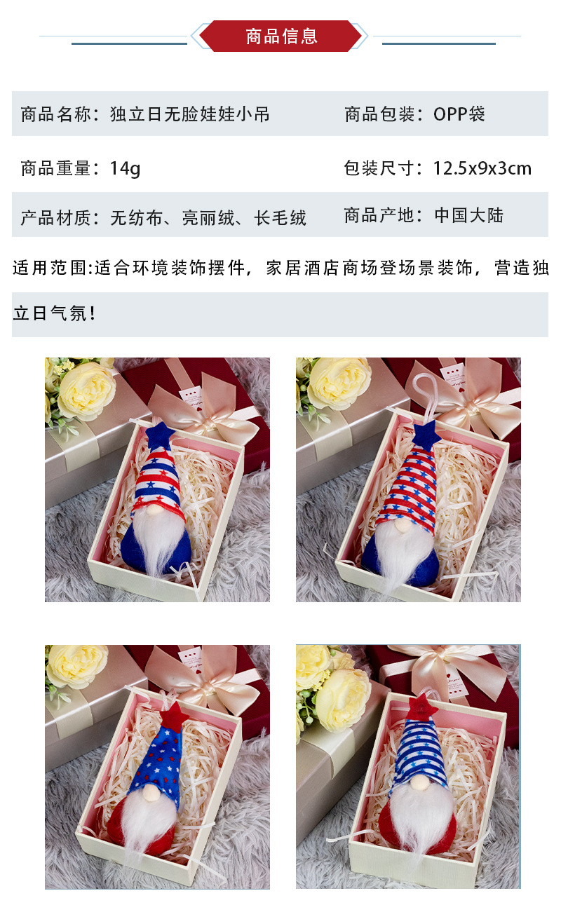 独立日装飾ペンダント小人老人無顔人形小吊アメリカ国慶節家庭装飾ペンダント