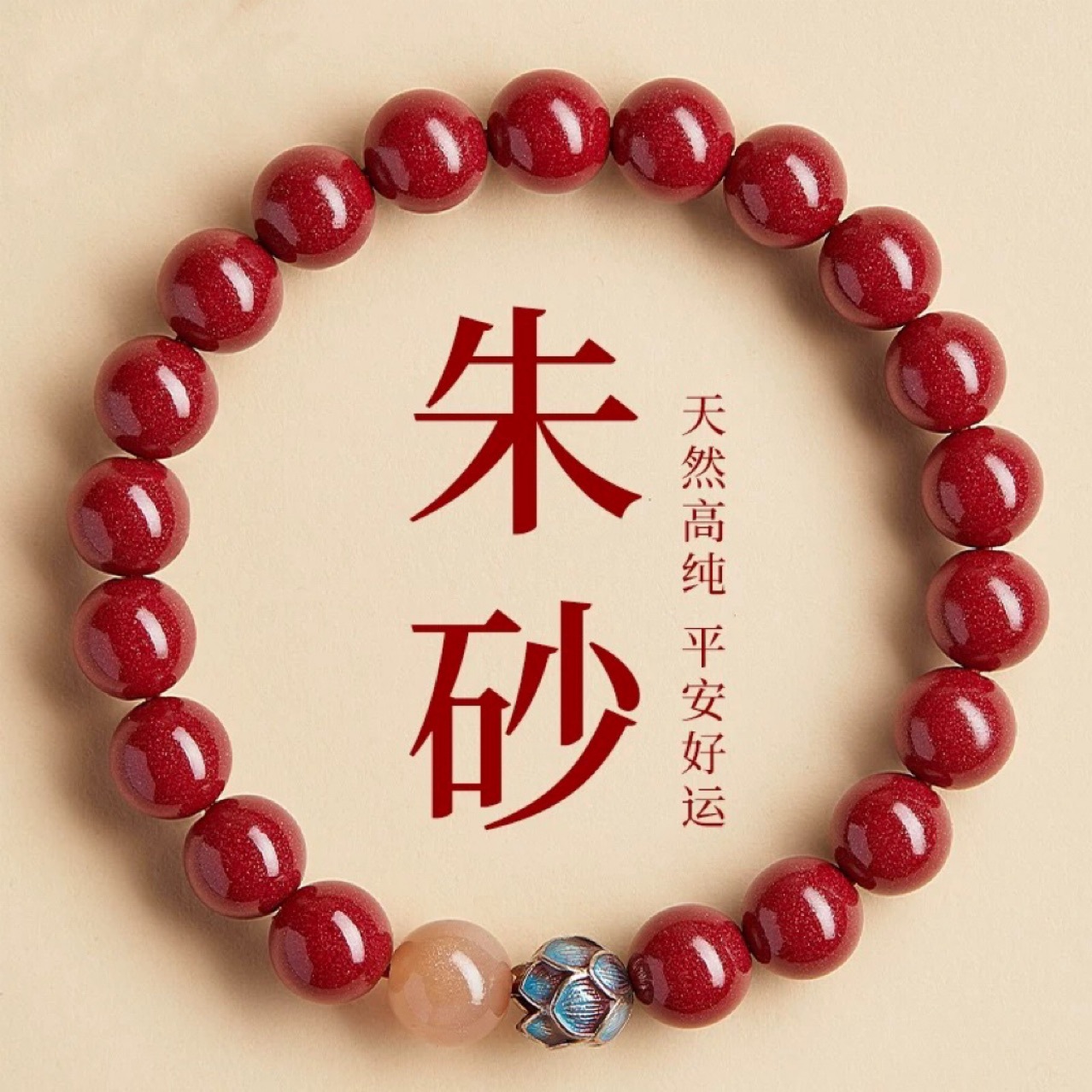 朱砂蓮の花の手串の原鉱の正規品の公式の旗艦店2025本命年のブレスレットの女性の白鹿の同金は玉を回転します。