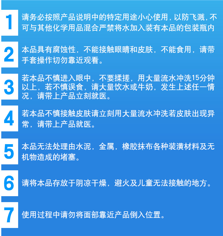 品名1 台所の下水道、強力な疎通剤、迅速な疎通、異臭の排除、強力な除菌、管壁を損なわない、毛髪を分解する