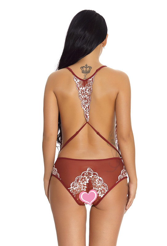 外国貿易の情緒の下着のレースの透かし彫りの誘惑の下着のガーターは首を掛けて背を現して連体の服の女性のsleepwearを現します。