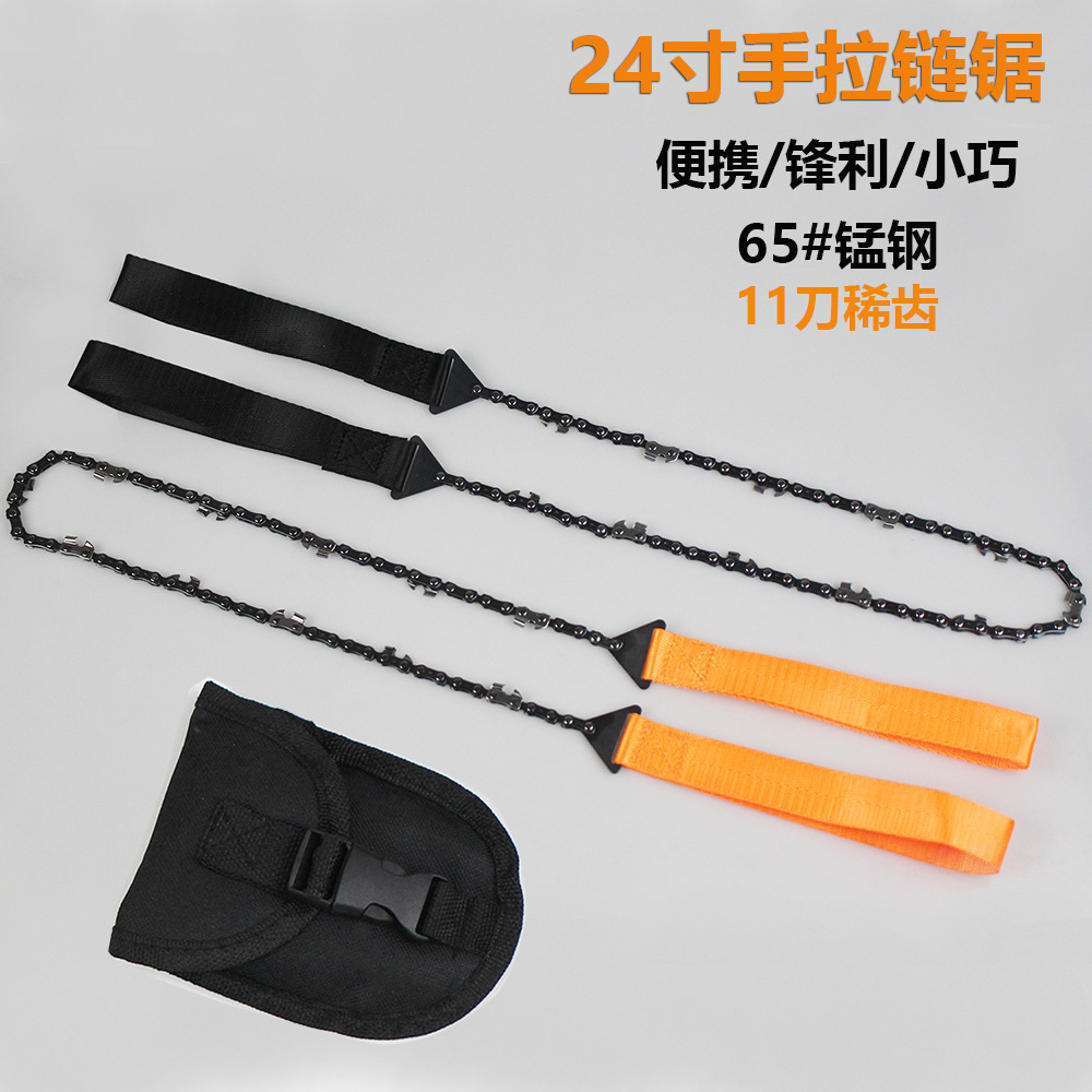 户外便携口袋手拉链锯 11/33齿24寸野营求生链锯园林伐木线锯工具