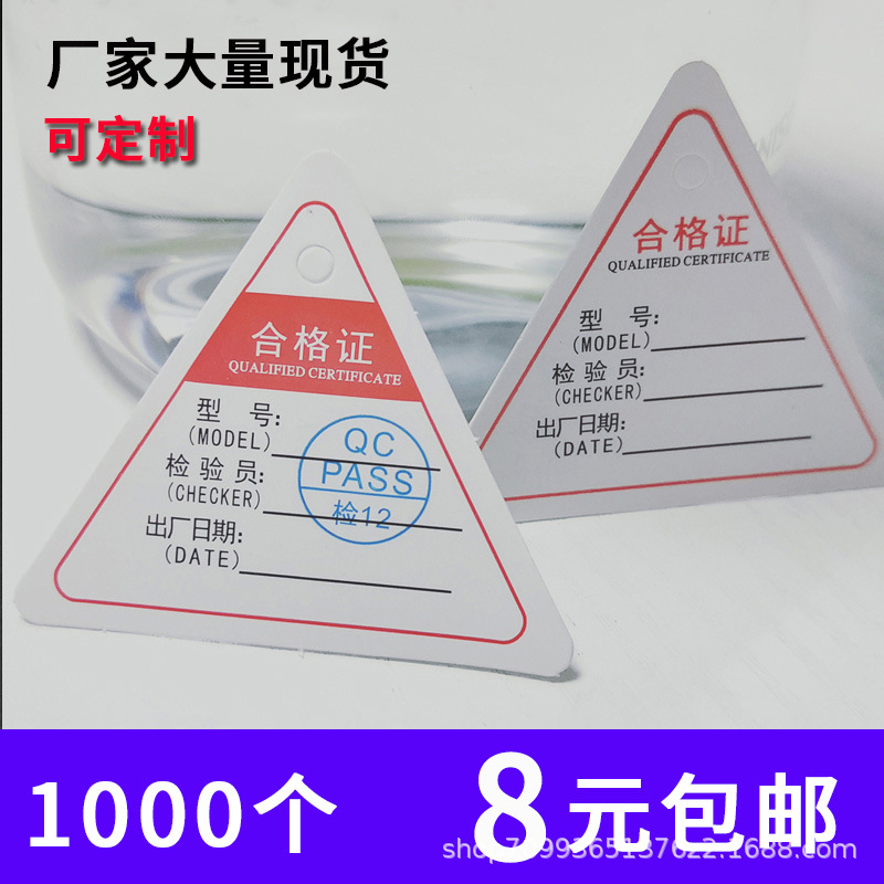 日用品製品合格証ラベル現物三角形方形合格証共通ラベル証明書吊り札カスタム