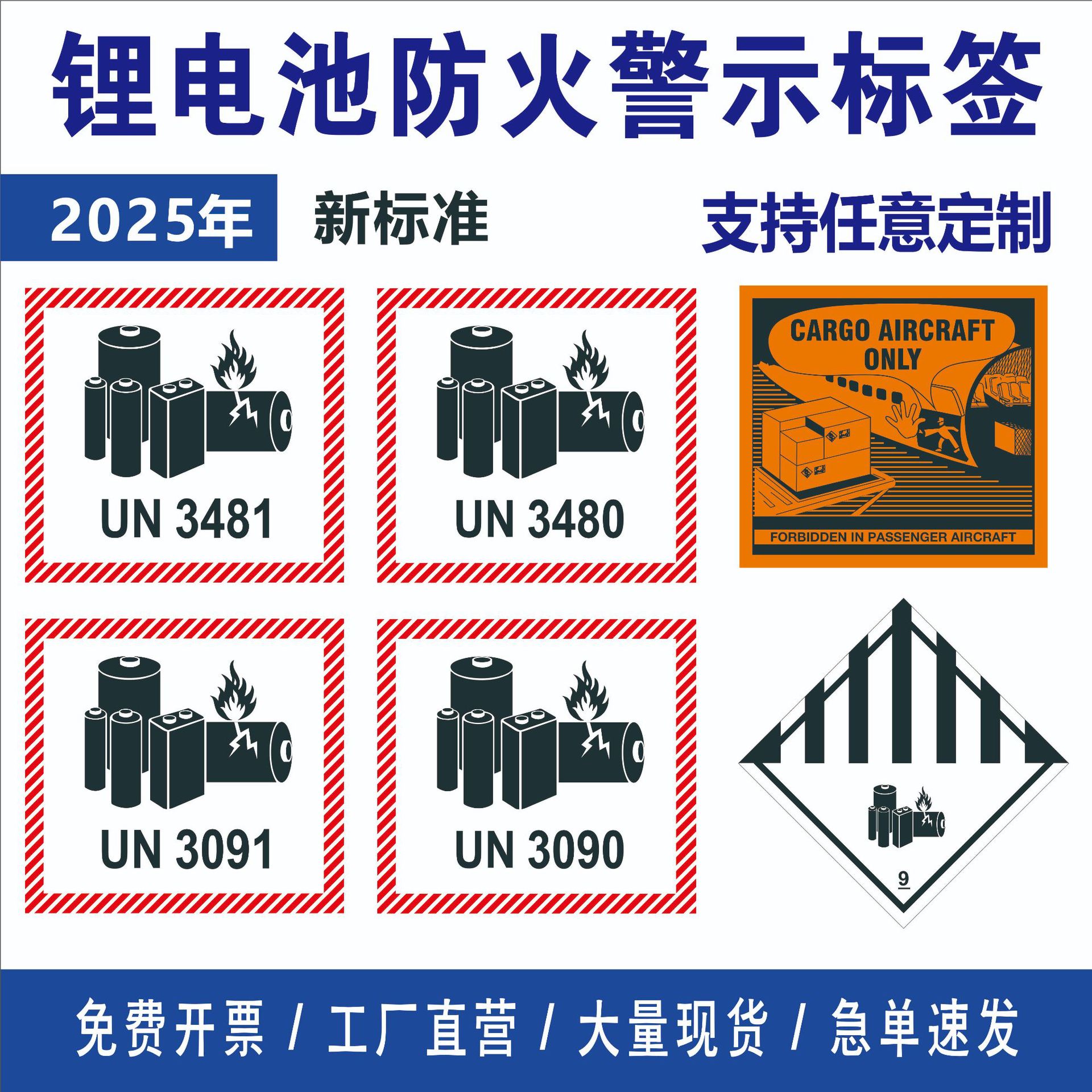 現物リチウム電池防火標準電池警告ラベルUN3481 UN3091 UN3480 UN3090