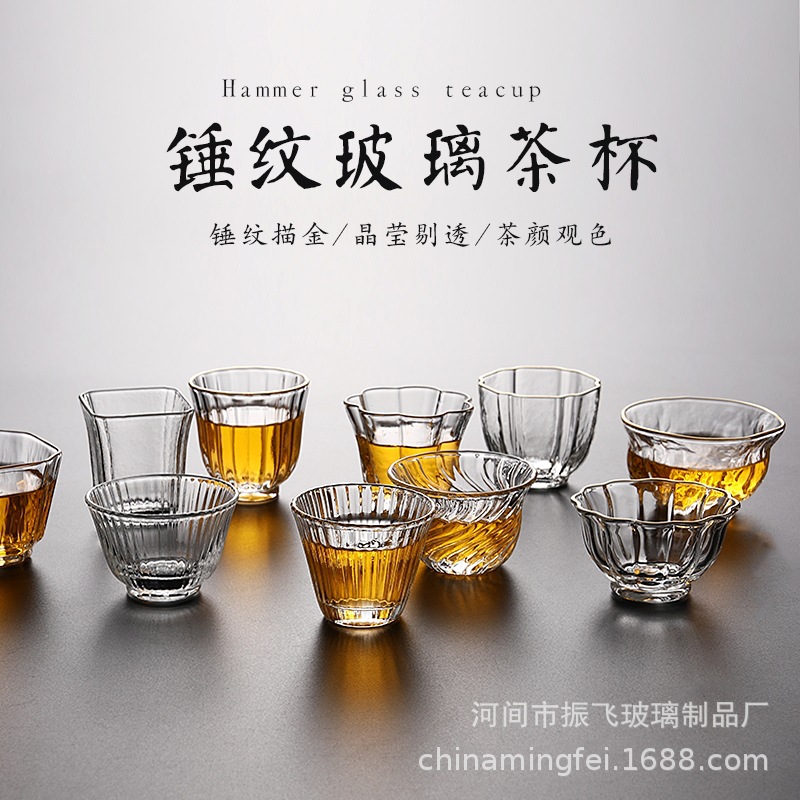 メーカーの現物を厚くしたガラスカップ家庭用透過ハンマー目紋品茗杯高ホウ素シリコン耐熱ガラスカップ