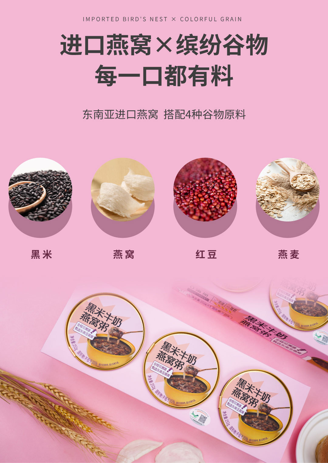 黒米ミルク血糯米 厚ココナッツミルク燕の巣粥 OEM カスタムミールリプレイスメント粥 インスタント燕の巣粥