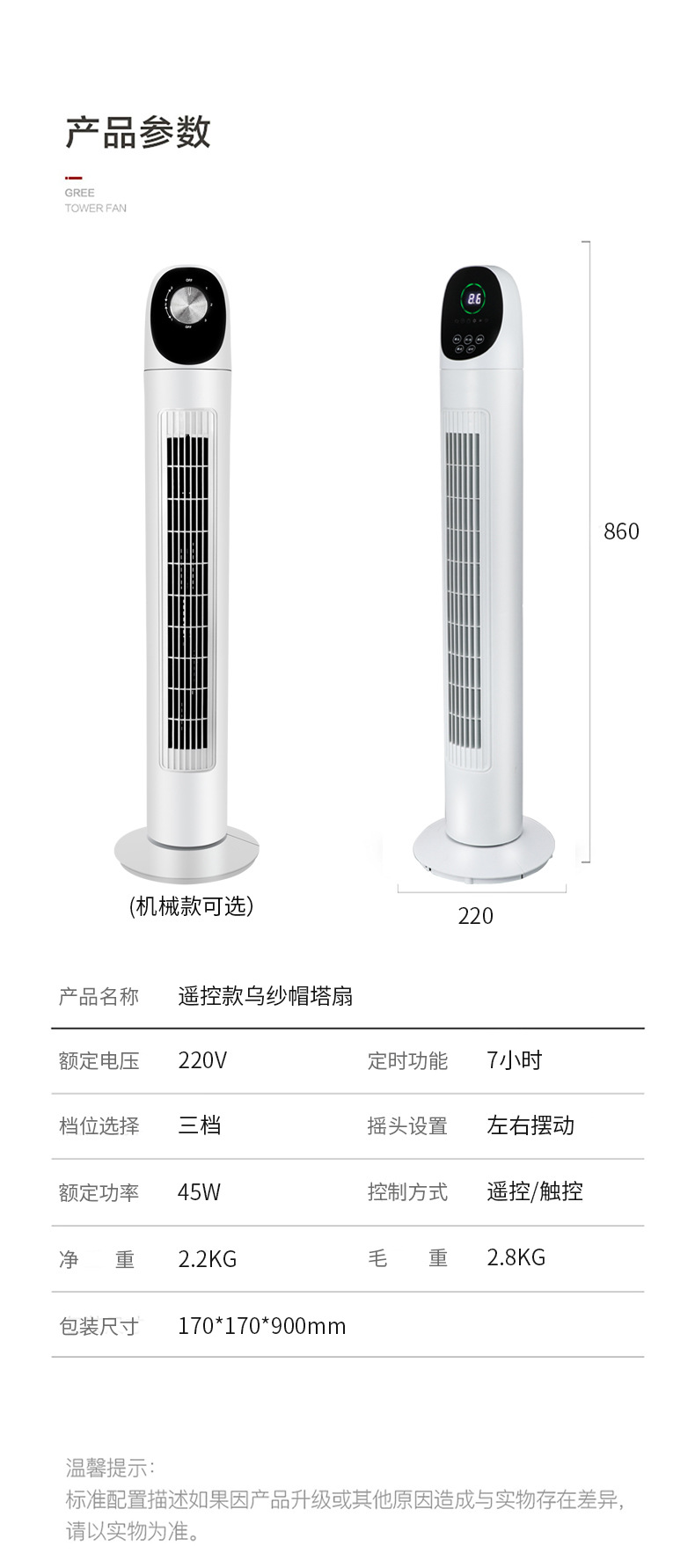 Tower Fan 工厂直销立式塔扇落地扇机械遥控款空气循环扇无叶风扇