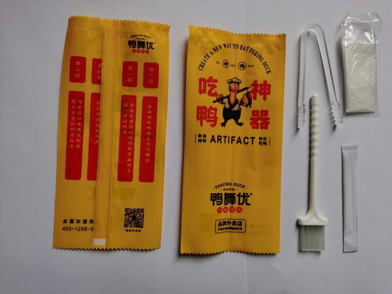 メーカー卸売り加工ロゴを含むブラシクリップ手袋のつまようじはアヒルの神器の組み合わせ食器を食べて現物を包んで郵送します。