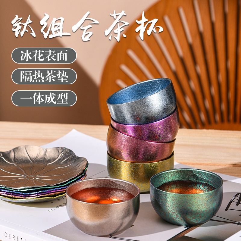 纯钛小茶杯冰花主人杯茶具户外露营钛合金水杯茶杯垫户外露营杯
