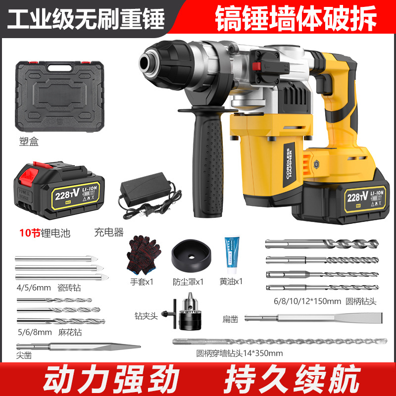 21Vリチウム電気ハンマーリチウム電気ブラシレス電気ハイパワーコンクリート電稿インパクトドリル両用クロスボーダー対外貿易