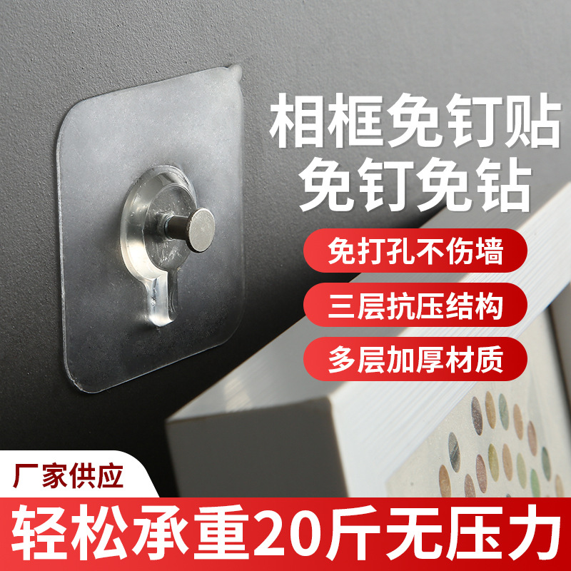 透明な新型プラスチック製フック、ステンレス製フック、粘着フック、壁掛けフック、家庭用シンプル粘着フック、卸売