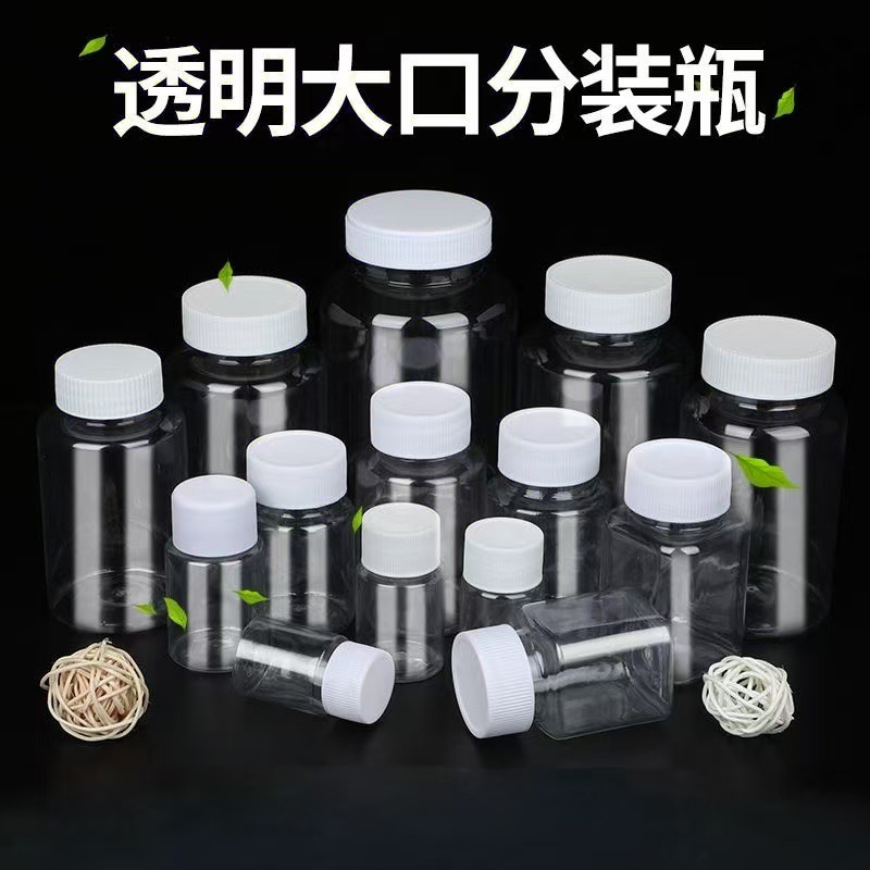 Pet透明大口プラスチックボトル固体液体分注ボトルエサボトル広口プラスチックボトルサンプル瓶