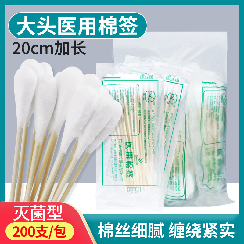 宝鶴医療用綿棒20cm無菌婦人科綿上薬検査用脱脂ヘッド滅菌長綿棒200本
