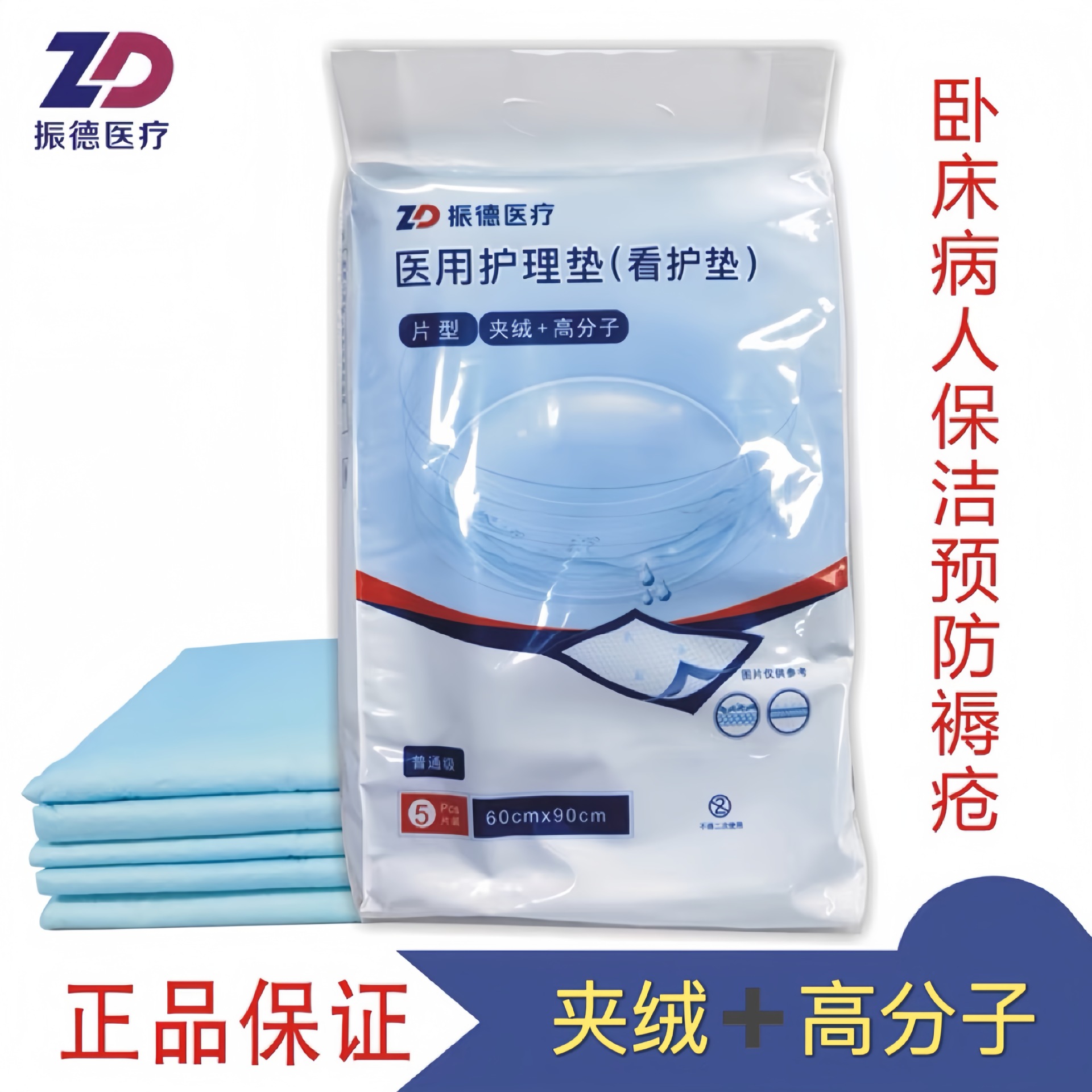 振徳医療用看護マット) 60x90cmベルベット高分子5枚入りマットレス防汚薄青厚ケアマット