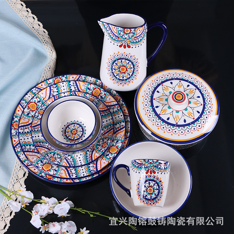 陶磁器の食事皿北欧風家庭用皿ステーキ皿キッチン食器ご飯碗料理皿スープ碗