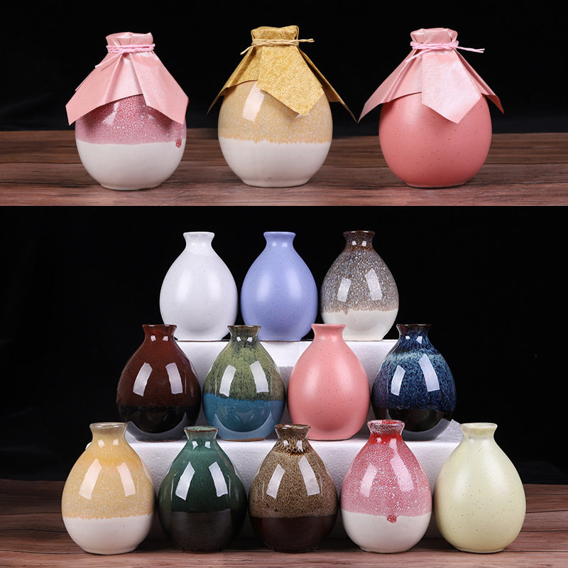 和風陶磁器酒瓶手作り家庭用彩釉果酒壇半斤入空酒瓶小酒瓶250ml入