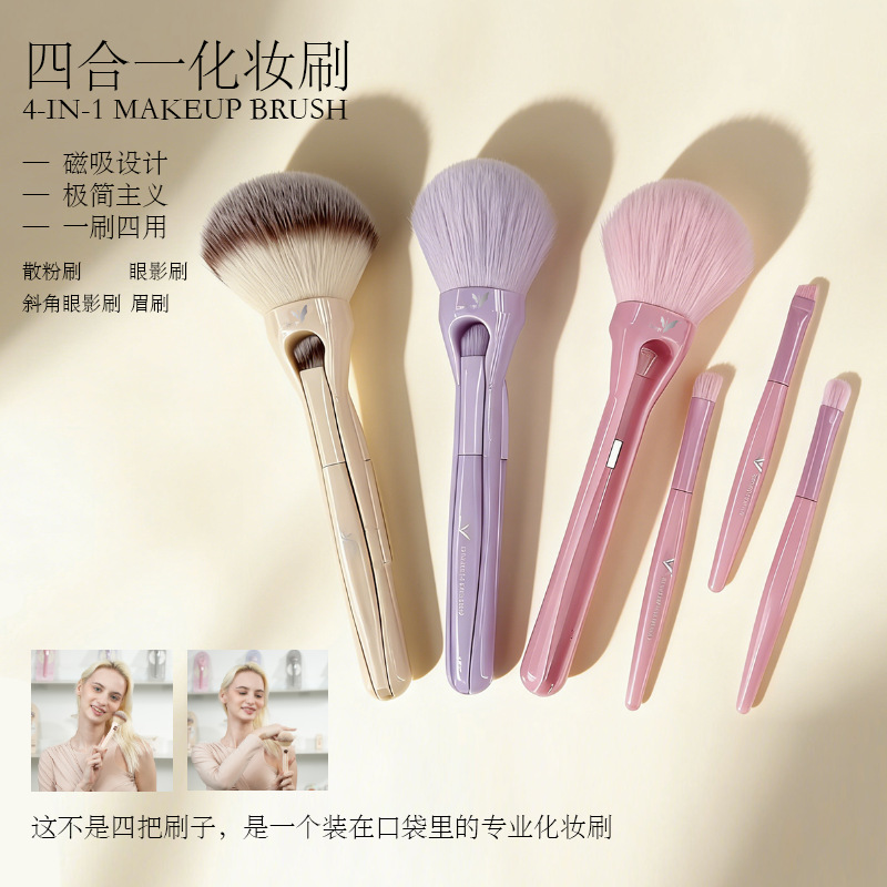 外贸跨境专供黛谷四合一磁吸化妆刷4支散粉刷眉刷斜角眼影刷套装