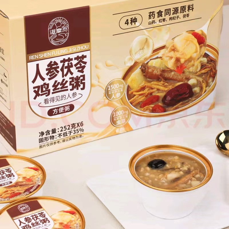 滋摩島人参茯苓鶏糸粥252g * 6杯無煮インスタント五穀朝食インスタント粥